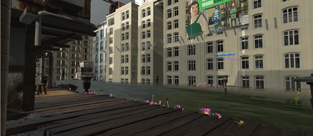 - A flooded city world where the gap between rich and poor is accentuated. Users, in the role of UN peacekeepers, can traverse the world in a cable car observing how differences in wealth play out in an altered physical environment.
